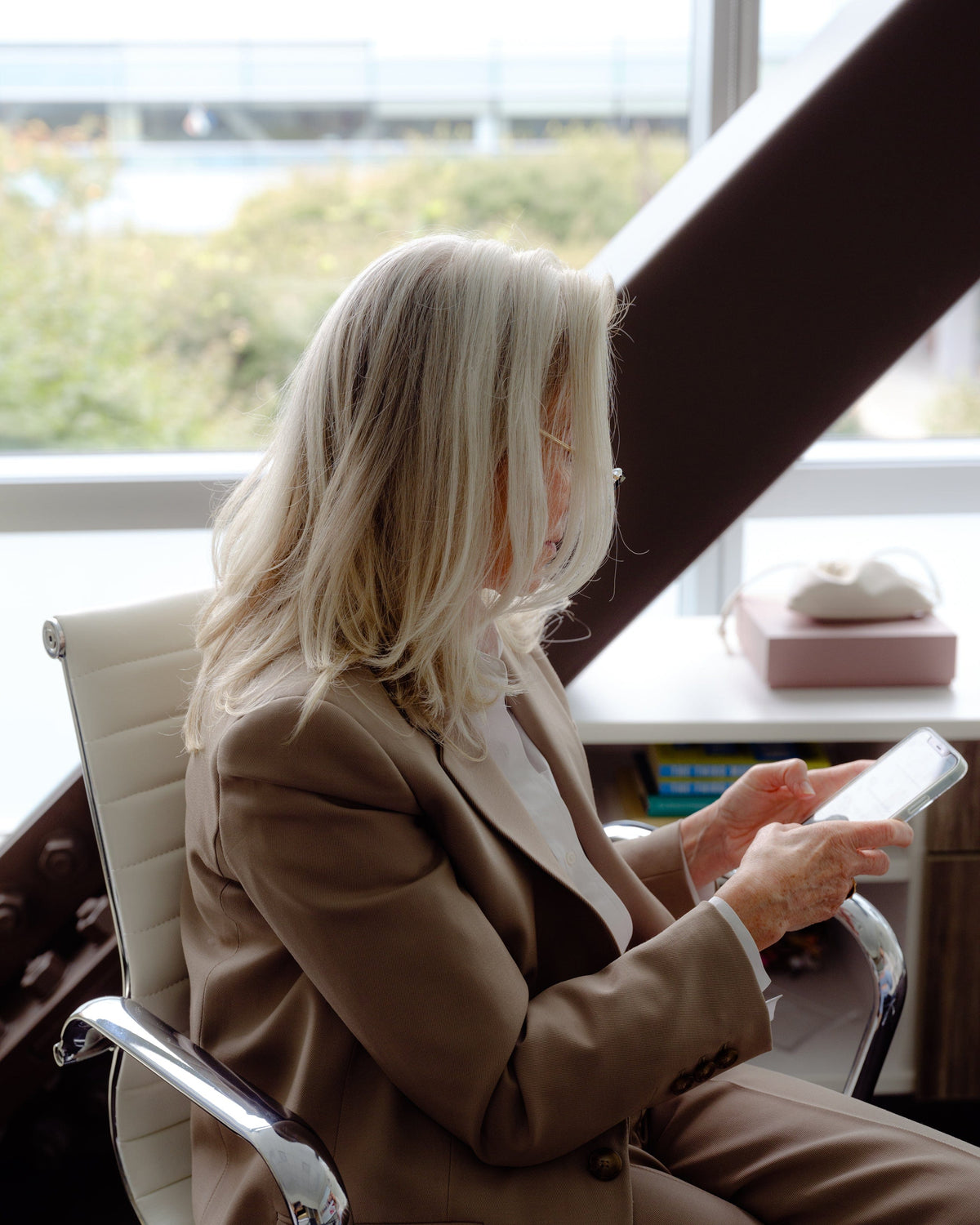 7:47 a.m.: I have a call with Rosie from London and send a few emails, then a quick check-in call to my daughter Sophie who lives in New York. Neil [my husband] made me a smoothie and I have a touch-base call with my SVP of marketing and creative, Lauren, on my way into the office.