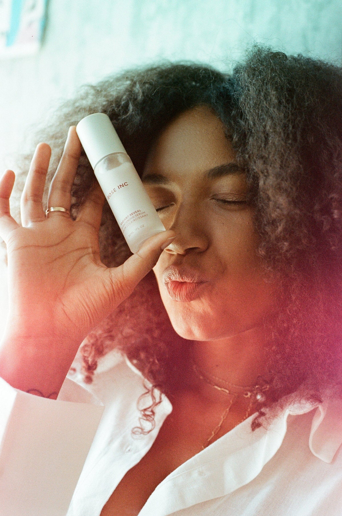 I like using concealer instead of foundation. I’ve been using Rose Inc’s Softlight Concealer a lot as a spot corrector, as well as under the eyes. I also love doing a nude lip and a highlighter to make me glow.