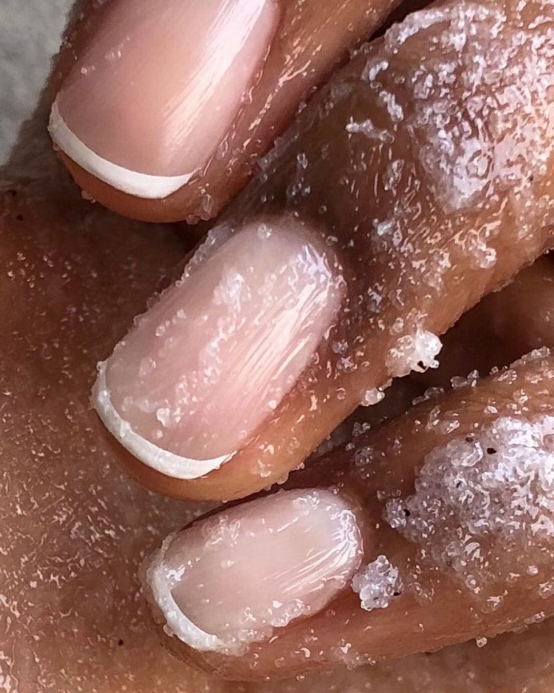 The first step in a luxe nail care session is using a good hand scrub. "A lot of people scrub their body but neglect the hand," Diogo says, which is an important step. She advises using a hand scrub once or twice a week to get rid of dead skin and make the hands and nails look and feel fresher. Pat dry after the scrub. "Try not to get all the water out of the hand," she says. "Keep a little bit of moisture." Then follow that with hand cream and cuticle oil.