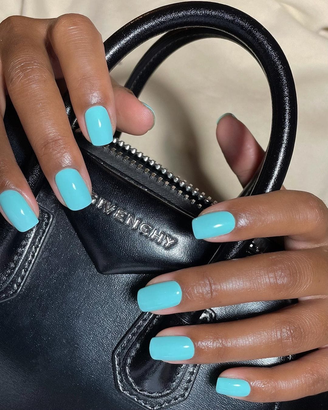 Once your hand care is taken care of, then comes the fun part: color. While the color polish is the star of the show, a good base coat to prep the nail and a top coat to seal everything is essential in making the result look great. Seche Vite’s quick-drying topcoat is one Diogo believes everyone should have in their at-home kit. And when you're applying the topcoat, be generous — that's Diogo's secret for an ultra-glossy finish.