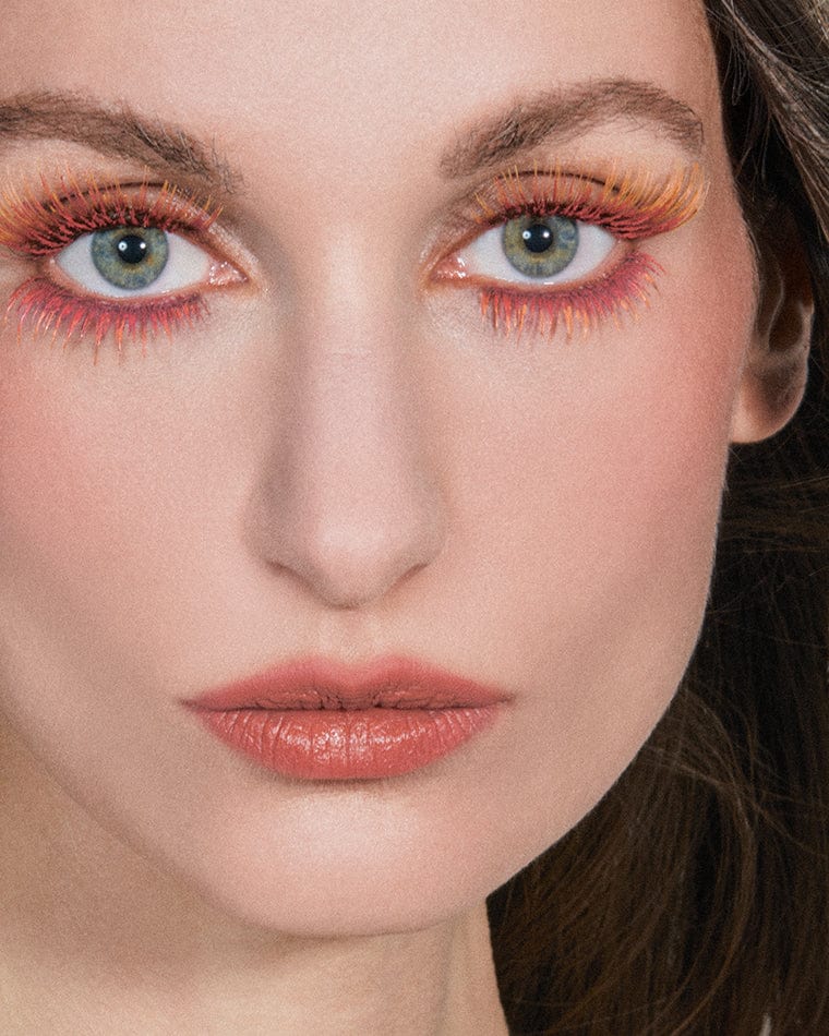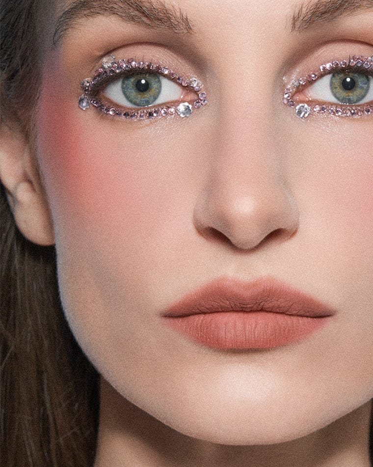 Matte and budge-proof, this technique also balances out a more intense eye look and stays on when eating. Salinieka applied three layers of Satin Lip Color to her lips, in Besotted, a beige-pink shade. “Blot it down with a tissue in between the layers to create a more matte effect,” she explains. Soft edges are also key to this natural look — no need for precision.