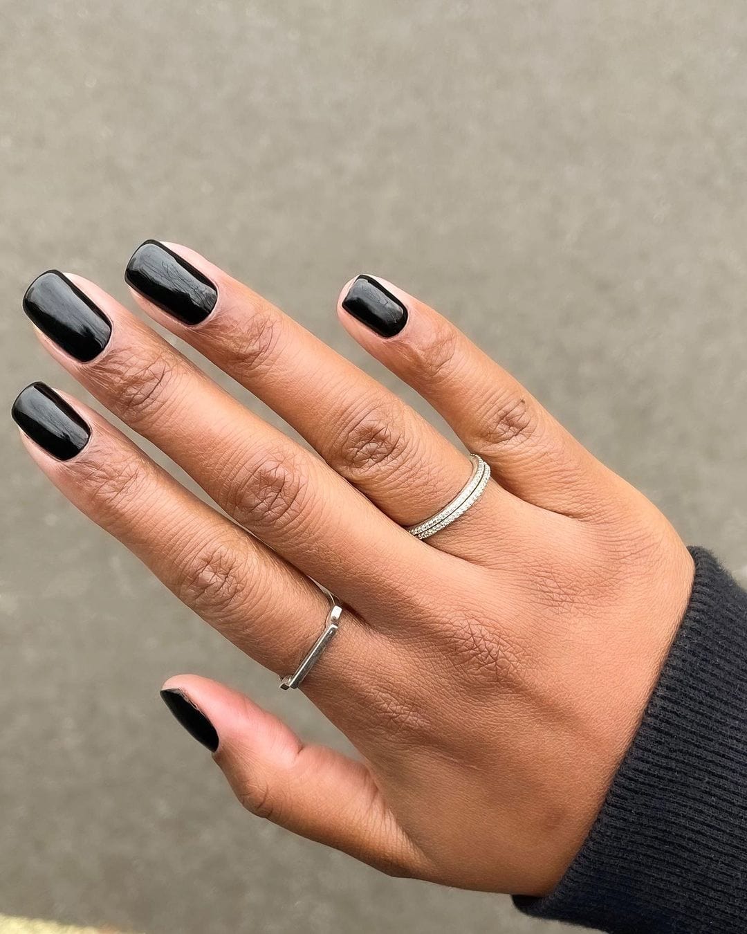 According to Diogo, vibrant green is the color of the moment — and it's not going anywhere. In particular, she recommends the shade Avo Guac by Color Dept. Furthermore, Diogo says a short, black, glossy nail is chic now, and as we go into the cooler months, plums and deep reds will also be top nail color picks.